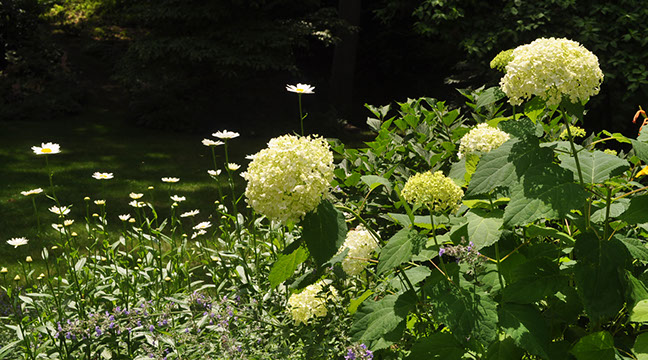 The long English style perennial garden that taught so much about the pleasures of gardening has been simplified to a quieter scheme with perennial groundcovers, boxwood and magnolias.
