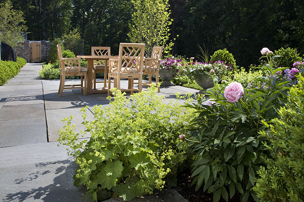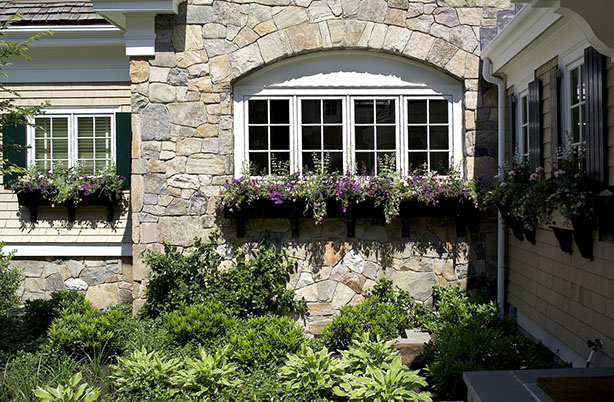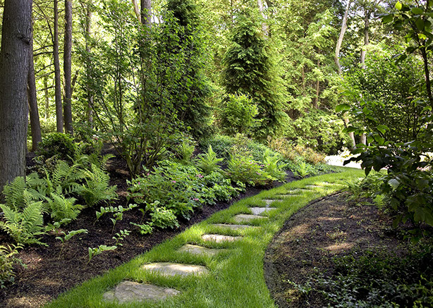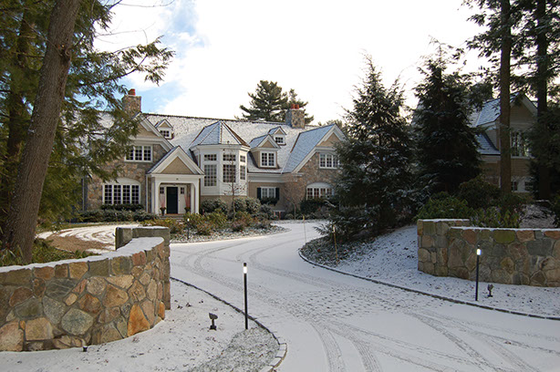 A new shingle-style residence on a large site provided ample opportunities for screening from the street while creating a feeling of expanse within the property. Detailed planting design offers seasonal interest in the front entry garden, terrace gardens, and woodland walks. The landscape for this country house was informal in materials and design.